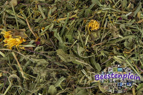 Green oats, dandelion, alfalfa, echinacea, beets, linseed chunks, marigold.