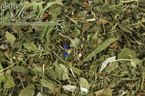 Luzerne, timotheehooi, paardenbloem, groene haver, weegbree, dille, erwtenvlokken, aardbeiblad, framboosblad, echinacea, hazelnootblad, paardenbloemwortel, berkenblad, rozenblad, goudsbloem, rode bietjes, bonenvlokken, peterselie, selderij, brandnetel, kokos, kamille, korenbloem, pepermuntblad, paprika, pastinaak, kervel, koriander, wilgenblad, oregano.