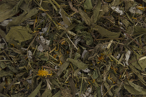 Een smakelijke mix van verschillende soorten gedroogde blad en bloemen voor knaagdieren en konijnen als supergezond extraatje.