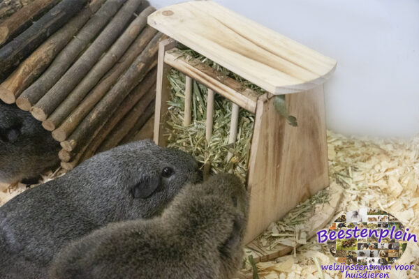 Supermooie stevige houten hooiruif om in je caviakooi te zetten, of in het verblijf van je kleinere konijnen. Houdt het hooi bij elkaar, makkelijk bereikbaar en langer vers.