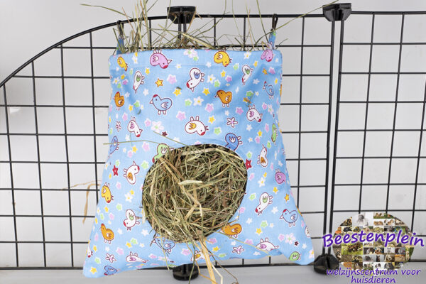 Handige hooizakje voor cavia’s met twee haakjes om hem overal op te kunnen hangen.
