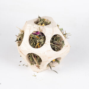 Lekker degelijke houten bal met gaten die je kunt vullen met hooi en/of grove kruiden. Zo houd je je cavia’s, konijnen, chinchilla’s en degoes extra lang bezig met eten!