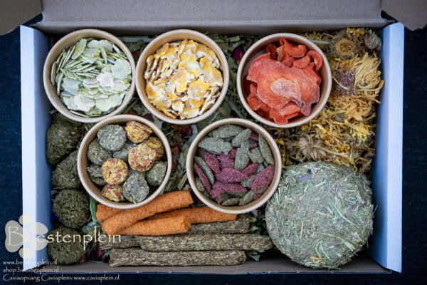 Deze doos van A5-formaat is gevuld met héél veel lekkere tussendoortjes in kleine porties, zodat je heel veel variatie hebt om te smullen of te proberen. De bodem is gevuld met een overheerlijke en gezonde kruidenmix.